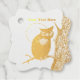 Dieses hängende Geschenkschild aus Folie zeigt in Goldfolie eine Eule mit großen runden Augen, die in einem Baum mit Vollmond hinter sich sitzen. Der Rücken ist in einer goldenen Farbe gemacht. Passen Sie Ihren Text mit den Vorlagen vorne und hinten an.