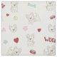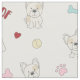 Dieses moderne Gewebe für Hundefreunde zeichnet sich durch einen unterhaltsamen Druck niedlicher französischer Bullhunde aus, mit rosa und hellblauen Pfosten und Hundeknochen, roten Herzen und Lebensmittelschalen sowie gelben Tennisbällen.
