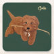 Ein Untersetzer aus Papier mit einem niedlichen Bild eines Golden Doodle. Der Hintergrund, das Bild und der Text können personalisiert werden. Originalkunstwerk von W.B.