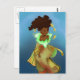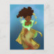 Eine Frau in einem Goldfisch inspiriert Kleid.