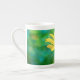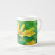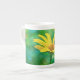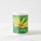 Hellgelbe Blumen auf blauem und grünem Hintergrund.