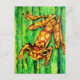 Ein goldener Baum-Frosch wird in diesem Aquarellbild vor einem brillanten grünen Hintergrund dargestellt.