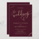 Mit stilvoller Kalligraphie kann diese goldene und bordeauxrote Hochzeitseinladung leicht mit allen Informationen über Ihren besonderen Hochzeitstag personalisiert werden.