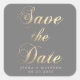 Grauer Hintergrund mit goldenem Kalligrafie-Skript "Save the Date" und Ihre eigenen Monogramme in elegantem Schriftart. Dieser Aufkleber verbindet sich wunderschön mit unseren Karten und Umschlägen.