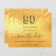 Eine gmädchenhafte und trendige Save the Date-Karte für eine 90. Geburtstagsfeier. Ein modernes Imitat vergoldet metallische Hintergrund mit Imitaten Glitzer Tropfen, Farbe Tropflook. Personalisieren und fügen Sie Datum und Namen hinzu. Der Text: Save the Date ist mit einem großen angesagten, handgeschriebenen Stilskript geschrieben. Nummer 90 mit einem Schriftart im Ballonstil.