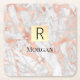 Goldkarton, Name und Monogramm, weiß und Rose Rechteckiger Pappuntersetzer