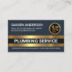 Ein dunkelblaues Cover mit einem Paar goldener Streifen Linien in der Nähe der Unterseite der Karte. Hier finden Sie den Firmennamen "PLUMBING SERVICE" und die Art der Dienstleistungen, die Sie anbieten können; Sie können die Beschriftungen in beide Artikel ändern, um Ihre eigenen Servicebedürfnisse Anzug zu geben. An der oben links Ecke finden Sie Ihren prestigeträchtigen Namen und die Kontaktdaten. Ein goldfarbenes Pipe Logo, können Sie verwenden, ist am anderen Ende. Auf der Rückseite, in einem weißen Cover, befindet sich das goldene Logo oben, gefolgt von den Kontaktdaten und einer Slogan-Beschriftung. Eine großartige berufliche Karte für Klempner. #plumbing #plumbingservice #plumbingservice #plumbingandheat #homeplumbing #plumbingtrage #pipe #waterpipe #pipefitter #faucet