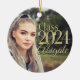 Vollfarbiges Foto und eine fette Klasse von 2022 Textdesign mit Absolventen Vornamen in einem Skript-Schriftart, um Foto zu betonen. Wählen Sie eine Schulfarbe oder eine andere Lieblingsfarbe für die Rückseite dieses attraktiven Ornaments oder passen Sie sich mit einem anderen Foto weiter an. Das Design kann durch eine weitere Anpassung, wie gewünscht, im Foto skaliert und verschoben werden.