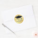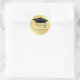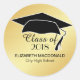 Gold Abschluss Aufkleber mit schwarzem Text und Mörtel. Die Klasse und dann der Name des Absolventen und High School oder Uni folgen. Eleganter Aufkleber zum Umschlag Aufkleber auf Graduierungsankündigungen und Graduierungsfeierankündigungen. Einfache Anpassung der Vorlage.
