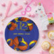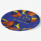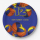 Diese Basketball-Party-Papier-Teller sind vollständig anpassbar und verfügen über Basketballhaufen an den oberen und unteren Rändern - jeder Basketballkorb hat zwei farbige Paneele, ein Blau und ein Gold - personalisieren Sie mit Ihrem eigenen - von katz_d_zynes