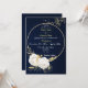 Elegante Blume aus Weiß und Gold mit einigen goldenen Blätter auf Goldkranz vor Marinestützpunkt Hochzeitseinladung Die Glitzer Details werden simuliert