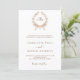 Weißer Hintergrund, goldener Kranz in der Rose und Text. Personalisieren Sie Ihre Monogramm-Initialen, Namen und Details und fügen Sie diese hinzu.