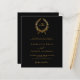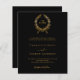 Schwarzer Hintergrund, ein Imitat goldener Kranz und goldener Text. Personalisieren Sie Ihre Monogramm-Initialen, Namen und Details und fügen Sie diese hinzu. 1 Blatt = 1 Einladung mit Druckkante bis Kante.