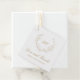 Elegante Hochzeitsbegünstigen Tags mit einem sauberen und zeitlosen Design mit Ihrem Monogramm in einem Kranz-Wappen zusammen mit der Nachricht "Liebe und Dank" und Ihren Namen.