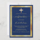 Modernes, elegantes und einladendes Hotel. Ein marineblau mit goldenem Kreuz dekorierter Hintergrund und vergoldete Imitate. Personalisieren und fügen Sie einen Namen und Details.