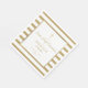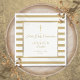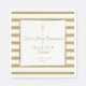 Elegante goldgelb und weiß gestreifte Papierserviette aus dem ersten Heiligen Kommunion mit einem goldenen Kreuz mit einem schicken goldenen Rahmen aus Imitat, der das Set des Festes in modernem Text umrahmt. Personalisieren Sie Ihre persönlichen Daten mit dem Namen Ihres Kindes und dem speziellen Datum. Entwickelt von Thisisnotme©