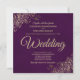 Diese Einladung ist einfach, elegant, schick und schön. Es zeichnet sich durch eine kühn vergoldete Imitate-Folienstraße oder Filigree in den Ecken aus, mit goldenem Schriftzeichen auf einem üppig marmorierten lila Hintergrund. Die quadratische Form macht sie einzigartig, und die formale Formulierung macht sie für die schönsten Zeremonien geeignet.