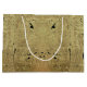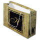 Große, glänzende Geschenktasche mit einem Bild aus goldenem Blatt und einem schwarzen Quadrat mit einem schwarzen Rand auf der Vorderseite mit seinem goldanpassbaren Monogramm. Sehen Sie sich die gesamte Sammlung des Vatertagsgeschenktages in den SPEZIELLEN TOUCHS an. | Abschnitt Gastgeschenke.