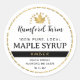Für ein ausgeklügeltes Etikett, das nicht kommerziell aussieht, schauen Sie nur auf diesen traditionellen Ahornsirup-Rundaufkleber. Die gepunktete Goldgrenze umschließt Ihre Informationen, die vollständig anpassbar sind, und das Goldblatt mit den Worten "von Hand gestochen" Set Ihren Sirup von den Konkurrenten ab. Dieses Label ist perfekt für Bauernstände, Bauernmärkte und lokale Geschenkläden geeignet.