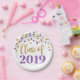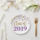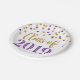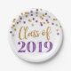 Kundengerechte Abschluss-Partyklasse von 2019 Teller im bezaubernden Gold und lila Glitter bewirken Confettimuster und elegante Hand beschrifteten Arttext.