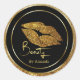 goldene Glitzer Lippen, schwarz und goldfarbener Rundaufkleber.