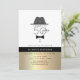 Einfache, elegante Metallgold Schwarz-Weiß-Männchen 50. Geburtstagseinladung mit Vintagem Hut und Schlips. Bis 50 Jahre!
