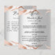 Ein Hochzeitsmenü und Abend Zeitleiste, Programm. Ein stilvolles Imitat silber aussehender Hintergrund mit goldgelben Venen aus Rose. Personalisieren Sie Ihre Namen, das Menü und das Programm und fügen Sie sie hinzu. Schwarze Buchstaben. 1 Blatt = 1 Menü/Programm, mit der Kante bis Kante gedruckt.