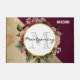 Begrüßen Sie die Tür mit einem Monogramm Buchstaben und Namen. Die Einrichtung besteht aus goldgelbem Marmormuster und einer soliden bordeauxfarbenen Farbe, die diagonal angeordnet ist. Ein Kreis mit einem Imitat mit goldfarbener Folienabdeckung, der auf einem hübschen Blumenstrauß mit Rose, Nelken und anderen Blume verlegt ist. Personalisieren Sie mit Ihrem Namen und Monogramm im Kreis.