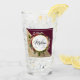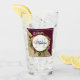 Trinkglas mit goldfarbenem Marmormuster und solider bordeauxroter Farbe in diagonaler Form. Ein Kreis mit einem Imitat mit goldfarbener Folienabdeckung, der auf einem hübschen Blumenstrauß mit Rose, Nelken und anderen Blume verlegt ist. Personalisieren Sie mit Ihrem Namen und Monogramm im Kreis.