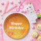 Marmoreffekt in Goldpapier-Tellern, Happy-Geburtstag-Thementext kann für jede besondere Veranstaltung personalisiert werden.