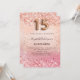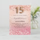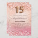 Eine moderne, stilvolle und glamouröse Einladung für eine Girl's Quinceañera, 15. Geburtstagsfeier. Eine Rose Gold und rot rosa Farbverlauf Hintergrund, Konfetti. Der Name ist mit einer modernen dunklen Rose goldfarbenen handgeschriebenen Schreibschrift geschrieben. Personalisieren Sie Ihre Party-Daten und fügen Sie sie hinzu. Nummer 15 wird mit einem Schriftart im Ballonstil geschrieben, Skript.