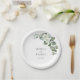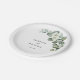 Feiern Sie Ihre Hochzeit mit diesen eleganten Tellern, mit goldenem Blattwerk mit Eukalyptus und individuellem Text Ihrer Wahl. Fügen Sie einfach Ihre eigenen Daten hinzu, indem Sie auf die Option "Personalisieren" klicken.