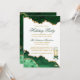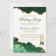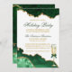 Moderne elegante Wasserfarbe Smaragdgrün und Gold Marmor Agate Geode Holiday Party Einladungskarte - Weißer Hintergrund mit Gold Script. Champagnerglas mit Bow.