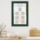 Fügen Sie dem eleganten Design Ihre eigene Touch hinzu, die moderne Schrift, den grünen und schwarzen Text inklusive einem sternenvergoldeten Weihnachtsbaum mit einem Metallrahmen. In diesem Sitzplan finden Sie die Namen der Braut und des Bräutigams sowie die Worte "Essen, Trinken und Vergnügen" und "Bitte suchen Sie Ihren Sitzplatz". Vorlagen sind für bis zu sieben Tabellen mit bis zu 8 oder 9 Namen pro Tabelle vorgesehen.