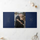 Moderne, minimale Typografie trendy Imitate Gold Typografie marineblau alles in einem Budget Hochzeitseinladung Vorlage mit 2 Fotos, uAwg und Details mit dem Scannen QR Codes mit einem schicken angesagten Kalligrafieschrift und dunklem Overlay. +++++++++++ Einfach mit ein oder zwei benutzerdefinierten Fotos (Sie können das gleiche Foto auf beiden Seiten hochladen) und Gastinformationen personalisieren! Die Einladung eignet sich für klassische, zeitgenössische Hochzeiten.