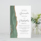 Der links Rand dieser eleganten, modernen Hochzeitseinladung besticht durch eine schlaue, grüne Aquarellgrenze, die mit Imitaten mit Goldmedaille bestickt ist. Der benutzerdefinierbare Text kombiniert das kohlegraue Skript und setzt serifenlose Schriftart auf weißem Hintergrund. Die Rückseite bietet Platz für Hochzeitsdetails auf einem soliden, weißen Hintergrund, zusammen mit einem QR-Code können Gäste scannen, um Ihre Website und UAWG zu besuchen, was die Kosten für den Druck und Versand separater RSVP-Karten rette.