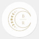 Siegel dein Himmelsthema mit dem "Gold Celestial Initials Wedding Classic Round Sticker". Der goldene Halbmond und die Sterne, ergänzt durch die stilvoll einfachen, anpassbaren Initialen des Paares, werden vor einem sauberen, weißen Hintergrund zu einem bezaubernden Emblem. Die Mondphasen, die sorgfältig eingearbeitet sind, fügen eine Ebene der Symbolik hinzu, wodurch diese Aufkleber mehr sind als nur dekorative Siegel.