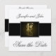 Schwarz, Elfenbein und Gold Monogram E Speichern Sie die Datumskarten Design von Elke Clarke ©. Passen Sie Ihre Hochzeitsinformationen an. Erschaffen Sie einen luxuriösen Look und ein regales Gefühl, um Ihren besonderen Tag zu verkünden.