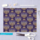 Muster der jüdischen Menorah mit Kerzen auf blauem Hintergrund Geschenkpapier.