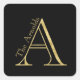 Goldmonogramm A und Name auf einer beliebigen Farb Quadratischer Aufkleber