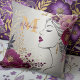 Mit diesem personalisierten Kissen können Sie Ihrem Raum eine Touch Eleganz verleihen. Das Design zeigt ein anmutiges Strichportrait einer Frau, umgeben von reichen lila und goldenen Blumen, mit anpassbaren Optionen für den Anfang und Namen. Ideal als Geschenk oder als eleganter Akzent für Ihr Wohn- oder Schlafzimmer-Dekor.
