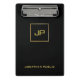 Goldmonogramm-Schwarz-Schablonen-elegantes modernes Miniklemmbrett. Vervollkommnen Sie für Architekten, Ingenieure, Direktoren, Manager, Berater, wirkliche Anwesen-Agenten, Buchhalter, Realtors, Vermittler, Rechtsanwälte, Rechtsanwälte, Doktoren, Unternehmensfachleute, Stylisten, Designer, Lehrer, Musiker, alle Berufe.