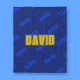 Goldname und wiederholter Blauer Name auf dunklem Fleecedecke