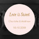 Rosa Untergrund. Text: Liebe ist süß. Personalisieren und fügen Sie Ihre Namen und das Hochzeitstermin. Für süße Gäste Gefallen wie Schokolade, Kekse.