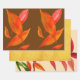 Farbenfrohe moderne Aquarellkunst, künstlerische und farbenfrohe Herbstblätter und Herbstfarben aus Orange, Braun und Gold. Schöne originale Kunstblattdesigns.