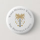 Weihnachtsschmuck auf Golden Palm Tree Warmer Urlaub wünscht Personalisierten weißen Button. Unser Weihnachtsgeschenk-Knopf zeigt eine goldene Palme mit festlichen Goldverzierungen, die von Ihren "Warmen Feiertagswinken" oder anderen Feiertagen gesäumt werden, sowie Ihren Namen in eleganter Serifentypografie. Alle Texte können einfach mit eigenen Angaben auf der Personalisierungsvorlage überarbeitet werden.