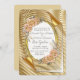 Eine elegante Goldkarte mit fliegenden, abgerundeten goldenen Ecken und goldenen Creme-Rose für eine schicke Ankündigungskarte zum Personalisieren.