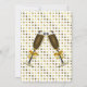 Chic-Hochzeits-Verlobungs-Party-Feiereinladung erfolgt in goldtone auf weißem Polkapunktmusterhintergrund, mit einem goldtone gerahmten weißen Textbereich. Grafiken von zwei gefüllten Champagnergläsern verzieren die Unterseite und die Rückseite der Einladung. Personifizieren Sie den ganzen Text für Ihren besonderen Anlass.