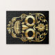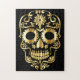 Schwarzes Rätsel mit einem goldenen Zuckerschädel