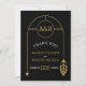 Diese atemberaubende Dankeschön-Karte für eine moderne Hochzeit wird sicherlich einen Eindruck machen, denn ihr glamouröser Goldrahmen erinnert an ein exquisites Schmuckstück. Die Initialen des Paares sind Set vor einem dunklen Hintergrund und schaffen einen auffälligen Kontrast. Der Rahmen ist mit einem Blatt auf der einen Seite und einem Pfeil auf der anderen Seite zart dekoriert und verleiht dem Design eine Touch von Eleganz. Ein goldenes Muster mit den Namen des Paares, das diagonal über einen schwarzen Hintergrund angezeigt wird, wird auf der Rückseite des Elements angezeigt.